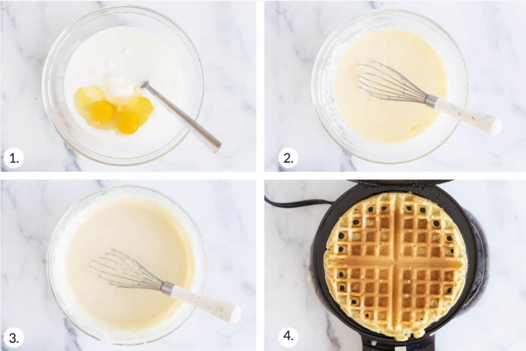 The idea behind this recipe is simple: based on classic waffles, replace some of the liquid with yogurt to make it more nutritious.